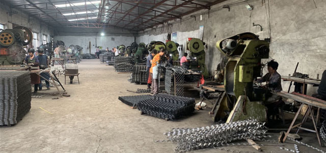 我厂所生产的产品广泛应用于用于石油化工大型装置,特别是有利于催化剂化装置主要设备的衬里结构的主要配件之一,它能够提高衬里的耐磨性能和强度,耐磨衬里都用龟甲网加固,一般部位用碳钢(A3F)龟甲网、如反应器及一、二级旋风分离器、U型管再生器烟道等处, 高温部位用合金(1Cr13)龟甲网,如再生器及一、二级旋风分离器等处。龟甲网为扁钢带冲成的六角形格,固定在保温钉端板上。
